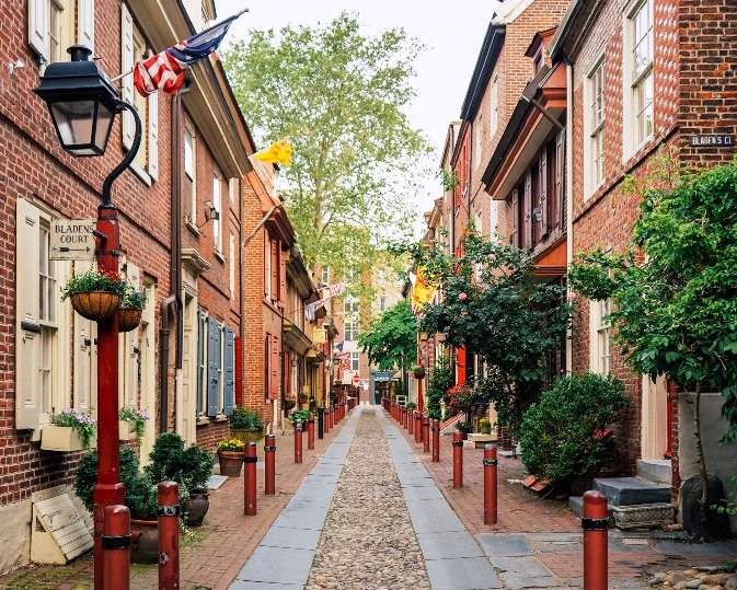 The 32-house Elfreth's Alley is the oldest continuously inhabited street in the nation, with houses dating back to 1720–1830.