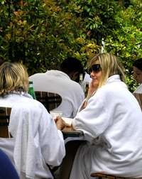However, even without romance, the hot springs still exert their ancient magic, drawing thousands of guests to take the waters in Aix and to enjoy the offerings of this modern spa hotel. At lunch, the terrace is packed with red-faced people in their white terry robes ordering steak frites (fries) and luscious fattening desserts after a morning of expensive massages, facials, and cures.