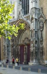 I have a date with the cathedral as St-Sauveur has a connection to the hot springs.. At barely 9:30a.m. it's hot as I head up the narrow, pedestrian-only streets watching the small stores and galleries open. Half-way there I spy the 1661 astronomic clock tower and walk into a wide square that smells like a florist's – this is Aix's flower market. Another fountain here is supplied by a cold spring and has an original Roman column in the centre of its pool. People sit around the edge chatting on their cell phones.