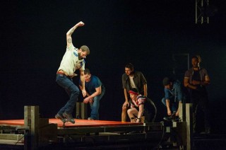 Opening scenes of sprinkles and splashes of water had the audience in hysterics as it depicted human nature in a lighter hearted manner. A building construction site gives performers the extra boost to tap to completion, whilst creating their equivalent of The Harlem Globetrotters with handy basketball tricks.