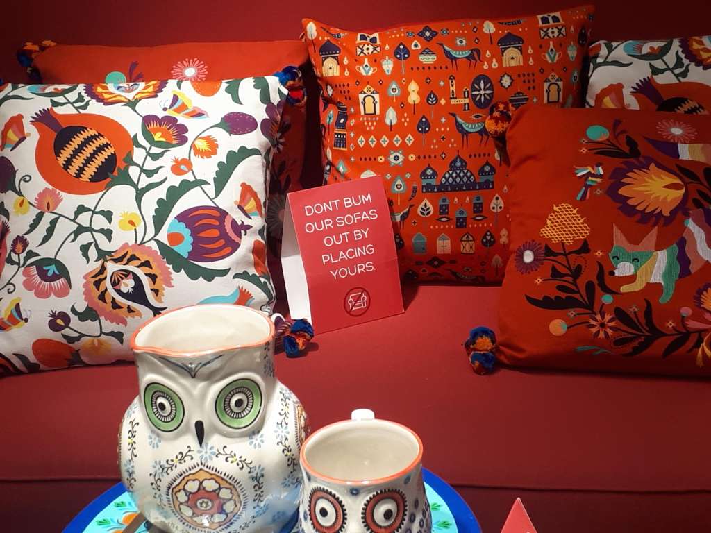 The local way of warning trespassers ‘don’t bum our sofas out by placing yours’ at Chumbak store that aim to ‘tickle the humour of an Indian customer’
