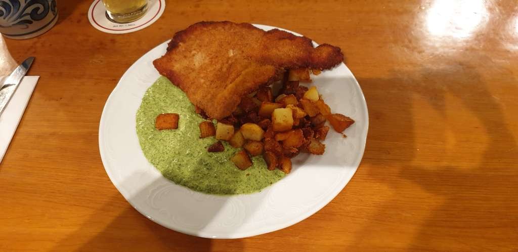 You cannot leave Frankfurt without devouring a Schnitzel (meat in breaded crumbs) smothered in Green Sauce. Many an eatery will serve you this in a heartbeat with potatoes or fries.
