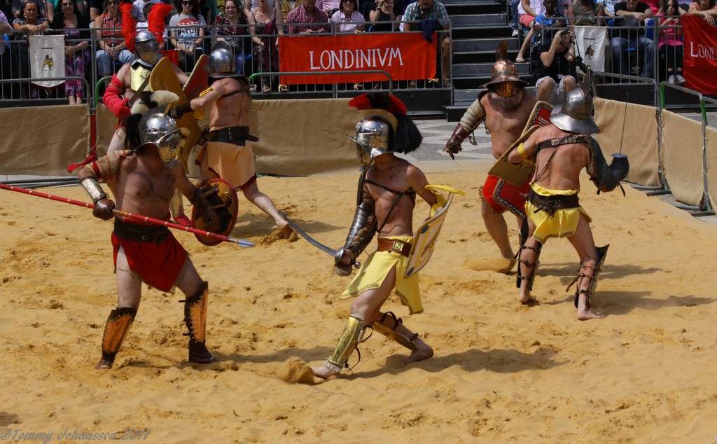 In the busy epicentre of Moorgate, Central London is Guildhall yard that plays host to the Gladiator Games which depicts the blood, sweat and tears that fighters in the Roman era (around AD 50) put their bodies through to stay alive.