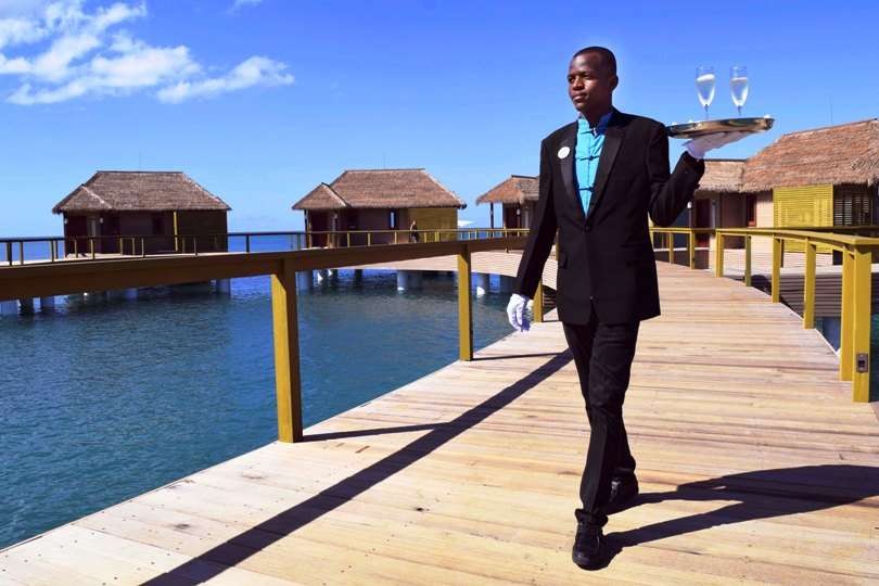 The Tahitian islands, in the South Pacific, may be the birthplace of such accommodation, but Sandals in the Caribbean has perfected it.