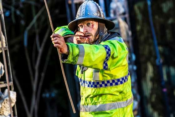 The costumes are apocalyptic, with the Sheriff's men and women in dirty high-viz jackets.