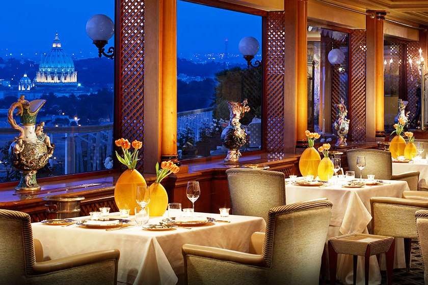 The hotel's La Pergola is the only three Michelin-starred restaurant in Rome, and houses the world's largest private art collection