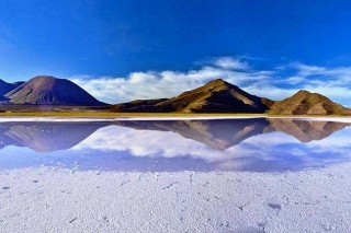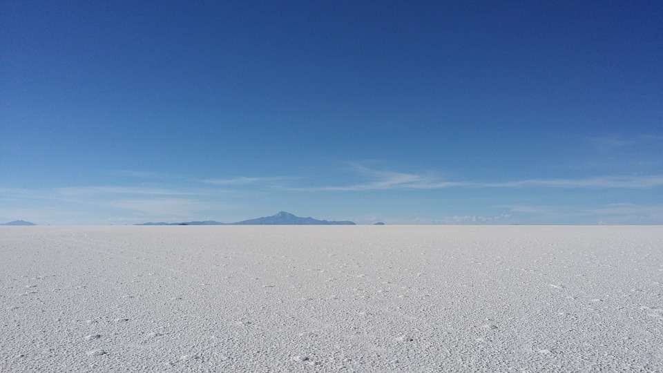 The Salar, which was formed as a result of transformations between several prehistoric lakes, is covered by a few meters of salt crust, which has an extraordinary flatness.