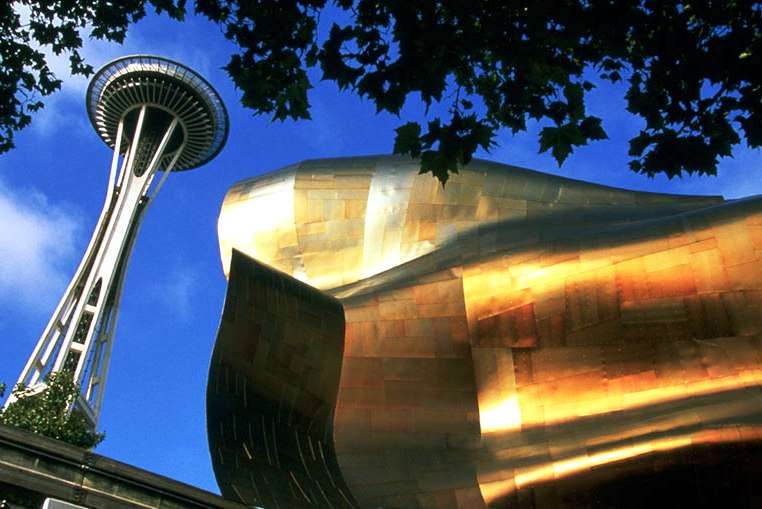 With its Space Needle and The Mark Tower, Seattle's skyline is surrounded by mountains, snow-capped volcanoes, forests and ocean and islands.