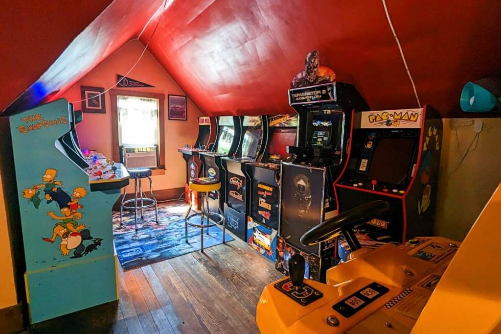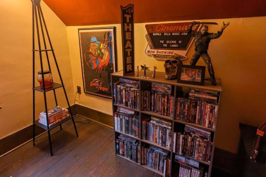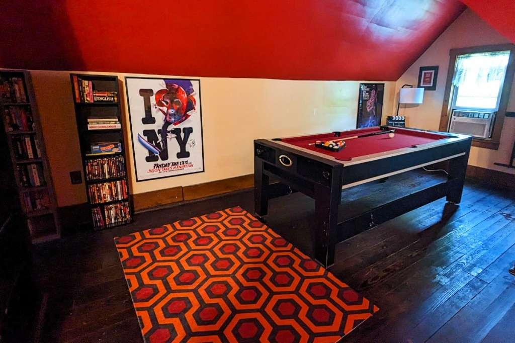 Bill's attic is a fully equipped retro gameroom with pool table and a 65" TV with state-of-the-art sound and mood lighting—it's the perfect place to rewatch the movie while staying where it was filmed. A selection of over 400 DVDs and VHS tapes stun film fans looking to find their next favorite movie.