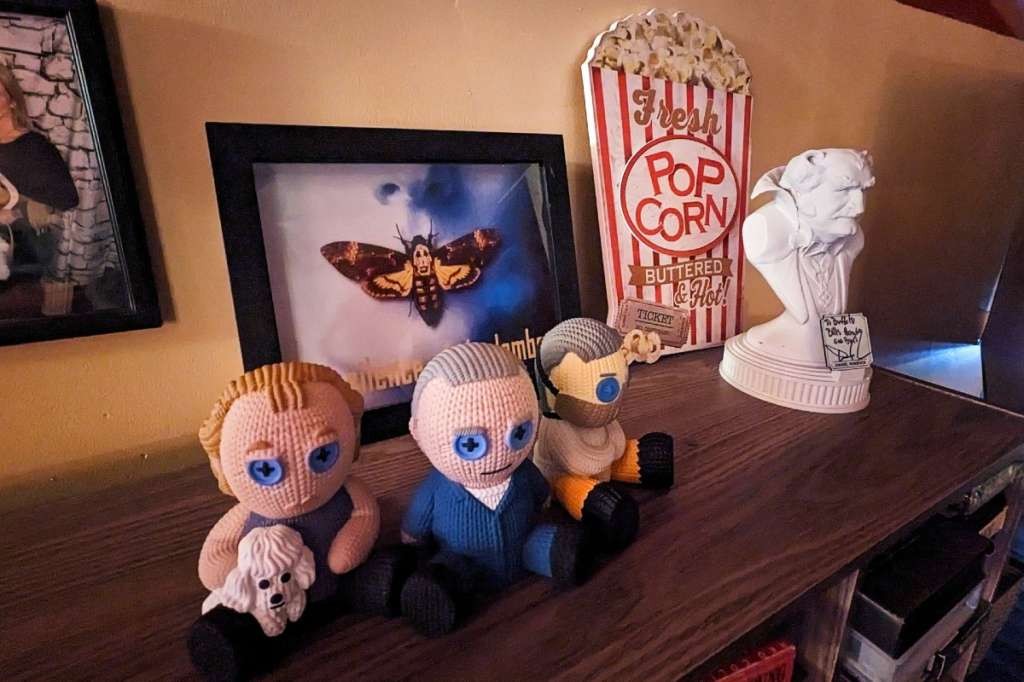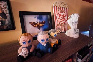 The house has a full kitchen, complete with a fava beans poster. Throughout the house the décor is all Silence of the Lambs themed, and it is amazingly tasteful. Each room is decorated with unique items—from mantel decorations to original artwork—and stuffed Precious dogs are sitting throughout the house.