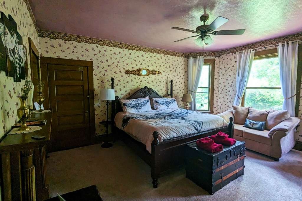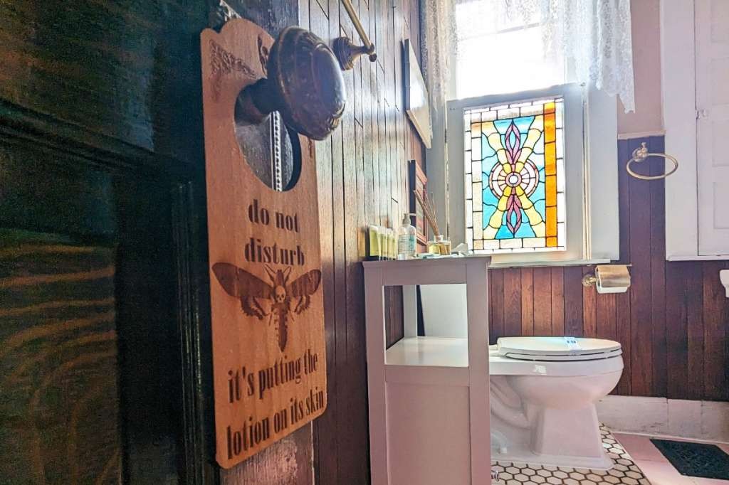 The 1910 Victorian home was built adjacent to a railway, and the active tracks make for added entertainment while enjoying the front porch. Out back, a caboose is ready for guests to explore! The stay is like a personal resort with many options for entertainment. A thorough list of rules and operating instructions is provided to guests. This includes how to handle the occasional sightseer looking to get a glimpse of the house. We had to turn away a friendly and understanding Silence of the Lambs fan who came to see the house during our stay.