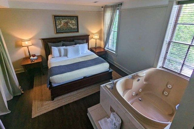 The Crescent Hotel offers 72 rooms—from standard to premium king—with several upscale suites and 4 luxury cottages. Some of the finer offerings include balcony rooms with a shared, furnished veranda; Victorian appointed parlor suites, and whirlpool suites as seen in the photos above.