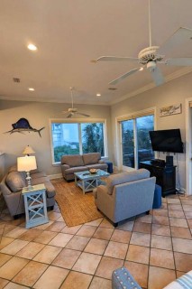 Heaven by the Sea sleeps 12 with five bedrooms and a trundle bed. The youngsters can share a double bunk bed room. The top floor houses a Queen-size suite with private balcony and impressive views. All floors can be accessed with the house elevator. The house is pet friendly.