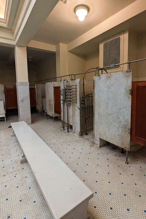 After securing belongings in a locker—with locker rooms designated male and female—and wrapping up in a modesty-preserving sheet, a personal bath attendant leads guests to a deep tub (long and deep enough for my 6-foot-plus frame). An optional loofah scrub precedes a swirling, 100-degree mineral water soak for the next 20 minutes. The journey continues through a circuit of classic treatments: a hot towel wrap, a sitz bath, a the most interesting part of the visit, the steam cabinet, where guests are jacketed in stainless steel except for the head. Visitors can opt to add a 20-minute massage to the wellness plan.