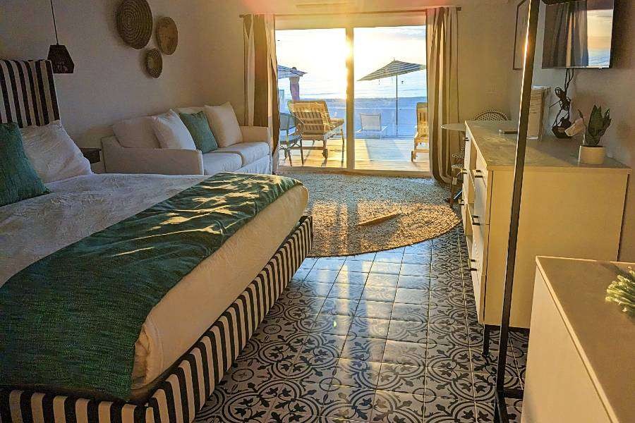 The Anna Maria Island Inn is a complex of seven properties, most located on a stretch of waterfront on the Gulf Coast of Florida from Bradenton Beach to Holmes Beach. The Seaside was completely renovated in 2022, and the result is a fresh, clean appearance with a kitschy and hip style. Rooms are stocked with unexpected conveniences, like extra sheets and blankets, beach/pool towels, deluxe versions of board games, and all the bar tools (including a blender) to prepare the perfect drink while relaxing in the sand.