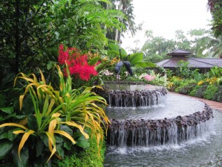 In the morning we purchased a rail/bus pass similar to our Suica and traveled to Singapore Botanical Gardens. It started raining and we waited with several other people under a gazebo for over an hour. Finally Miwa and I decided to head out in search of a restaurant for breakfast. Soon after our meal the rain slowed down enough for us to walk most of the garden. I was very impressed with the orchid exhibit, they all were naturally grown rather than in a pot.There were over 1,000 species and 2,000 hybrids. The Orchid breeding program began in 1928 creating the largest display in the world. The healing garden had over 400 different plants that are used for healing various parts of the body. There was also a Ginger garden displaying over 3,000 plants. We could tell where the Fragrance garden was before we entered the area because of the sweet smell in the air. There were many other themed areas and it took us almost three hours or 25,000 steps to cover this beautiful UNESCO World Heritage garden.
