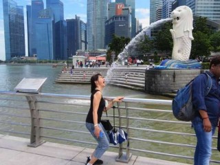 With our bellies full we boarded another subway train and headed over to the harbor to see the famous Merlion fountain. This is the symbol of Singapore and thousand of people flock to the site everyday to capture a picture with their mouths open catching the water from the Merlion. Yes, Miwa and I both took pictures from various angles.