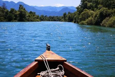 A short 4-kilometre track around the lake winds past caves and grazing cattle and there are boats for hire.