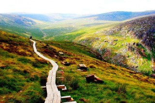 The 127 knm Wicklow Way, Ireland's oldest marked trail, crosses the Dublin and Wicklow uplands, through the rolling hills of southwest County Wicklow, to finish in the small Wicklow-Carlow border village of Clonegal.
