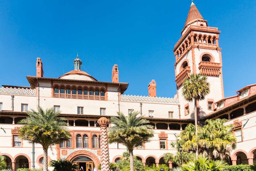 What was once the stately Hotel Ponce de Leon, is now Flagler College, specializing in deaf studies, as well as a museum with an outstanding collection from its original period. The museum tour starts in the enormous, stately courtyard with red clay tiled roof, gargoyles and a frog-festooned fountain that doubles as a sundial.