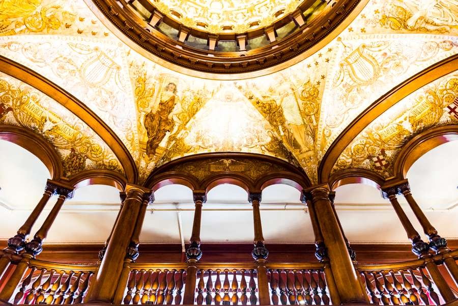 Once inside, the grand lobby reveals detailed architectural carvings and a rotunda with decorated with intricate murals depicting scenes of eight female figures representing the four elements - Fire, Earth, Air and Water - and the four stages of Spanish exploration.