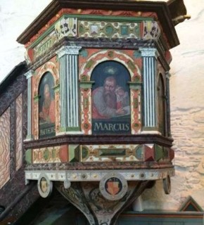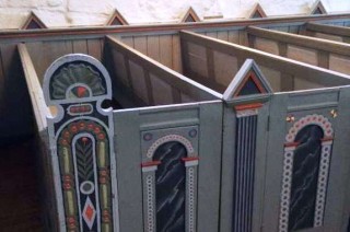 The choir was rebuilt in Gothic style after a fire in 1272, and the whole church was renovated in the 19th Century. Notable interior features include the richly carved Baroque pulpit (1658), a stone font of the Gothic period, and the stained glass in the east window depicting New Testament scenes.