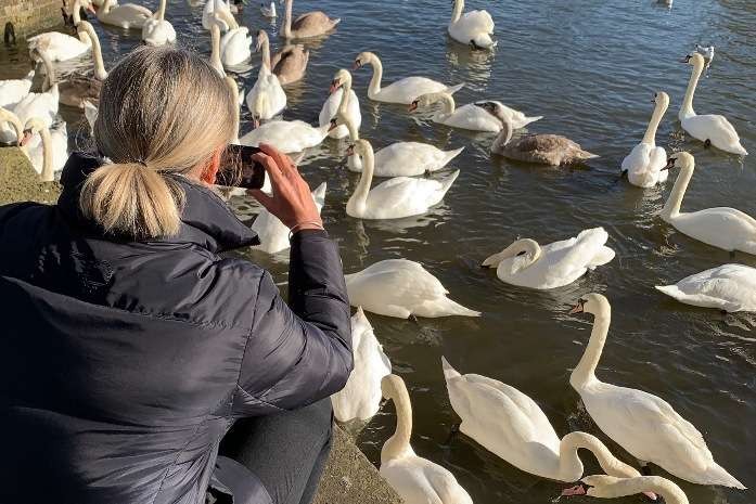 We began the 1.5 mile clearly marked trail at Clopton bridge, where the infamous flocks of swans, ducks and geese gather knowing likelihood of a feed.