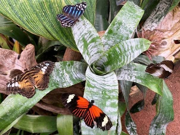 Walking through the farms tropical greenhouses that look to create the feel of the rainforest, one is surrounded by hundreds of free flying, multi-coloured butterflies.