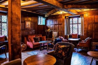 Thick, black timbers, low ceilings, whitewashed walls, leather studded Queen Anne chairs, smooth, age-old stone floors, narrow, well-lit corridors, colourful furnishings, cosy corners, thick drapes and a hunting lodge feel.