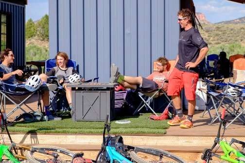 A system of five huts provides a luxury bikepacking experience, complete with showers, solar power for charging electronic devices, fully stocked kitchens with a refrigerator and freezer, lighting, hammocks, large decks, bathroom facilities and bicycle repair tools.