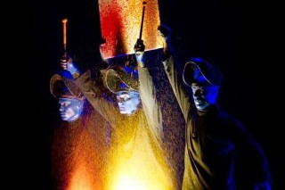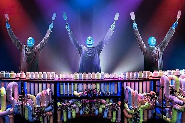 Performances mix art, music, comedy and state-of-the-art technology with the three bald and blue men backed by a rock band.