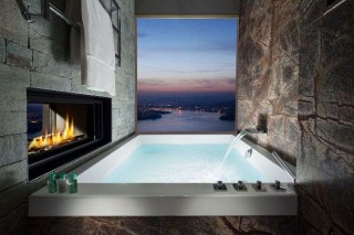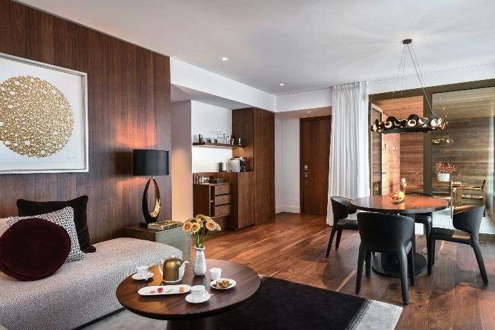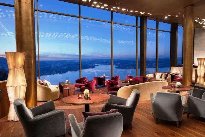 Of the four hotels at the resort, the contemporary Bürgenstock Hotel has 102 rooms and suites, a restaurant, alpine spa, lobby bar, wine cellar and cigar lounge.