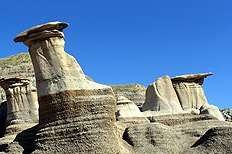 Instead of the traditional flat-as-a-pancake plains, the Badlands develop rolling hills, periodic outcroppings of trees and dramatic hoodoo rock formations. In addition, Rocking R, just outside of Strathmore, is an easy 45-minute drive east from Calgary Airport.