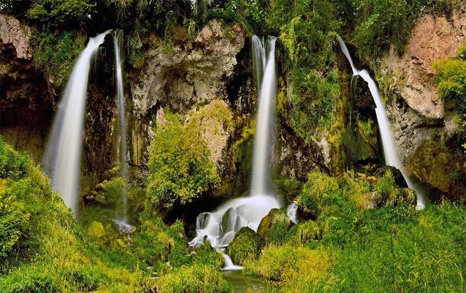 A few miles north of town is one of the best triple waterfalls in the state, Rifle falls. The 3 arms of the falls drop about 70 feet over a green covered cliff face to spill onto the rocks below. The falls feed Rifle creek with the cold fresh waters that are home to rainbow, brown, and cutthroat trout. Cloudy days are great to photograph foliage and waterfalls as the light is soft and even.