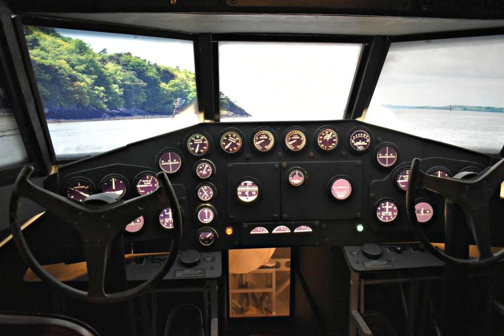 The flight deck sits above the passenger deck. This area is roomy, unlike what we see today.