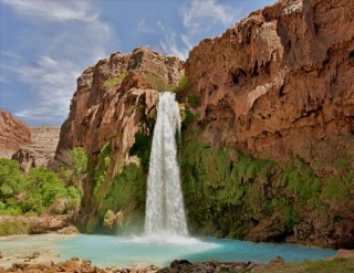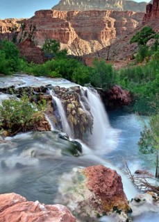 Havasupai (The land of blue green waters) is a land of red rock canyons, tall waterfalls and blue green pools. It surrounds one of the remotest villages in the continental United States on the eastern end of the Grand Canyon in Arizona. You can only get to it three ways.You can hike the 8 miles from the Rim, ride a horse, or fly in a helicopter. No cars allowed on the Havasupai Reservation.