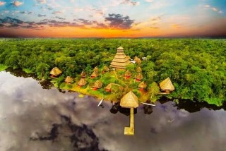 The luxurious Napo Wildlife Centre is located on a small ridge at the edge of a jungle lake surrounded by the Amazon rainforest, which is home to more than 600 bird and animal species