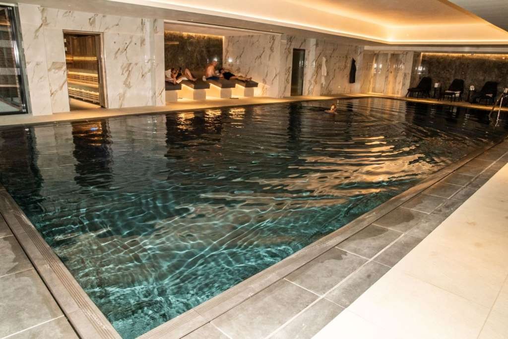 For guests who want some pampering there's the new Salus Spa, named after Salus the Greek and Roman Goddess of Safety, Welfare, Health and Prosperity. A statue of her is currently under commission. And talking of statues, another talking point are the life- sized blue and white garden ornaments of a panther and a young giraffe named Sal out in the Spa Garden. Here, you'll also find a luxury hydrotherapy pool and an extensive relaxation area – and soon to be completed woodland sauna. Inside the Salus Spa is a15-metre heated, infinity swimming pool with specially moulded beds alongside. Inside is a fabulous infinity heated swimming pool.