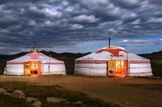 The camp accommodates 20 guests, at a time, 'high end' camping, in ornate traditional Mongolian 'gers', and the chance to explore the landscapes by horseback, kayak, or on foot.