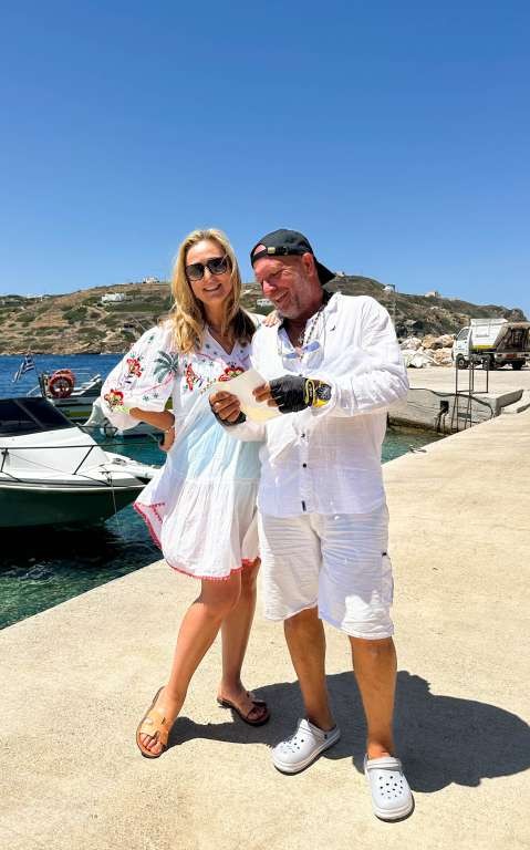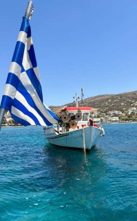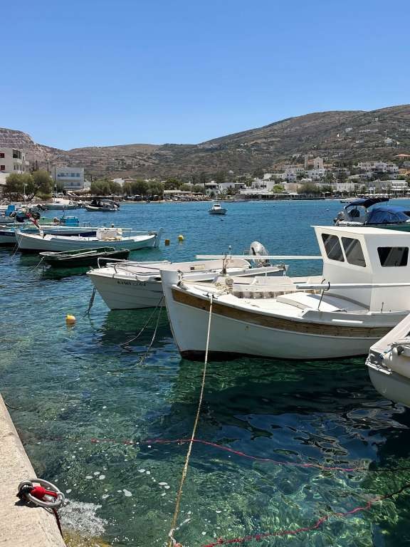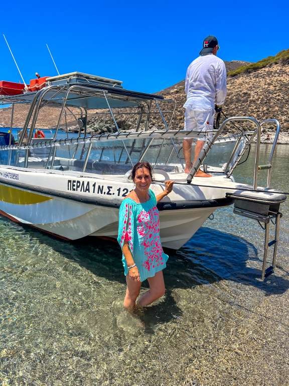 A boat cruise around Syros is a must with Perla Cruises. Our lovely host, Pino Di Lotto, made all the arrangements for us to be guests of Skipper Nikos on Perla 1. Our trip started from Kini dock, past some of the most incredible rock formations along the shoreline. Perla 1 is a lovely, comfortable boat with all the necessary safety measures in place. The total excursion lasts about four hours and takes guests to the most secluded and pristine beaches on the northwestern side of the island. This is one of the highlights of our stay on Syros, and we highly recommend you book a trip a few days in advance. What impressed us the most about this company is how they collaborate with people on the secluded beaches to gather their waste and have it removed by boats to the villages for safe disposal, ensuring visitors don't cause harm to the environment.