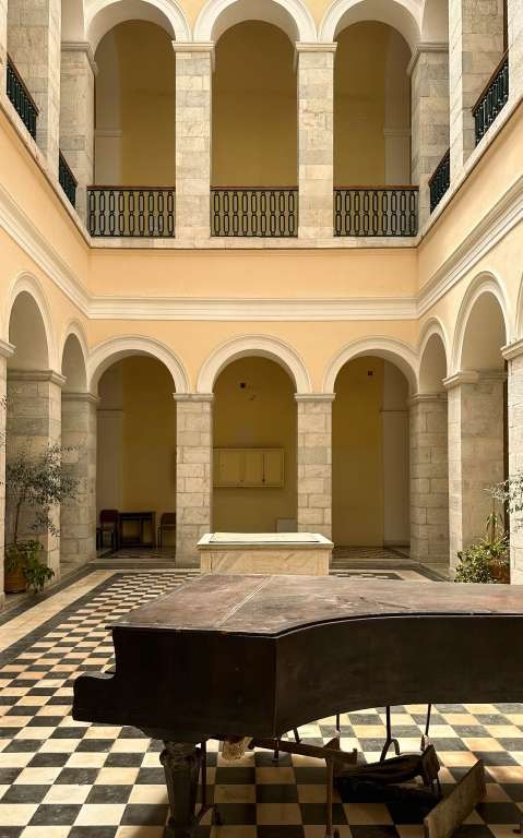The Apollon Theatre (known as La Picolla Scala), designed by the Italian architect Pietro Samp, first opened its doors in 1864. This 300-seater theatre is one of the oldest indoor theatres. Today, this 160-year-old preserved part of history is not only a symbol of Hermoupolis but also a testament to Syros' commitment to preserving the culture of Syros. We enjoyed admiring the theatre's small exhibition on the third floor, boasting a rich collection of century-old programmes and photographs of well-known artists who performed there, including some of their personal belongings. Don't forget to search for the ancient Pianola on display in the museum.