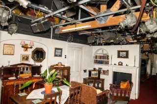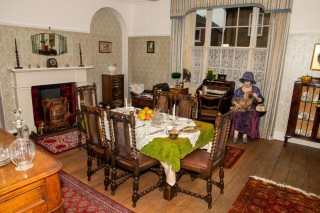EXPLORE THIS ATMOSPHERIC HOUSEThe atmosphere is enhanced by sounds from the 40s and 50s: the quiet crooning of Bing Crosby on the radiogram; the tick-tock and chimes of the grandfather clock in the hall; the shrill ringing of the old-fashioned telephone. Discarded toys and game are scattered on the sitting room floor, left by the children.