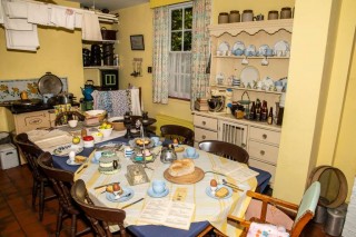 The kitchen – the hub of the home would have echoed with chatter and laughter as Alf Wight and his wife Joan and their two children Rosie and Jim sat down to eat together or do their homework. Next door in the scullery, damp washing is hanging from rails to dry, food is being prepared for the family meals.