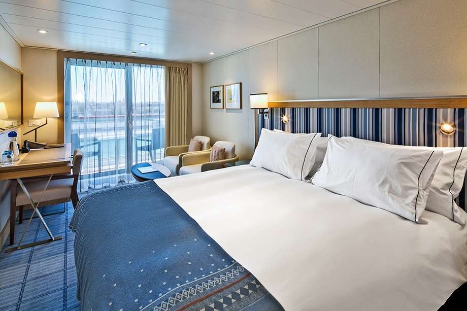 All staterooms aboard Viking's oceangoing vessels have private balconies and beer and wine are included at meals in the buffet and main restaurants, the specialty Manifredi's and Chef's Tablerestaurants and the outdoor Aquavit Terrace.