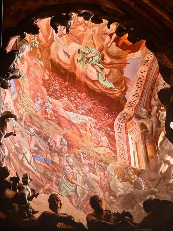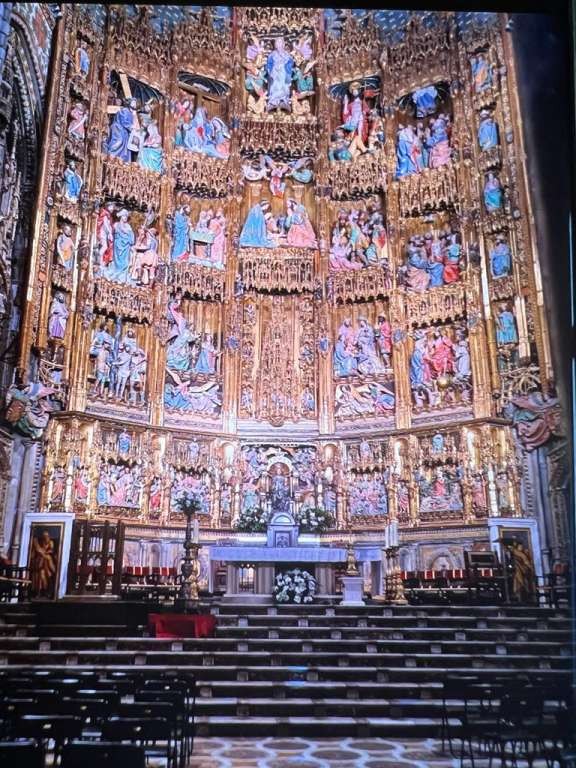 One of the most outstanding features of the Cathedral is the Baroque altarpiece called El Transparente. Its name refers to the unique illumination provided by a large skylight cut very high up into the thick wall across the ambulatory behind the high altar, and another hole cut into the back of the altarpiece itself to allow shafts of sunlight to strike the tabernacle. This is truly a heavenly vision to behold.