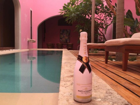 I ordered a champagne glass of ice at one of my favorite Mexico Boutique hotels, Rosas & Xocolate. Eyebrows may have been raised, however they delivered the unusual request to me poolside. Pop went the champagne at my private Ice Imperial pool party.
