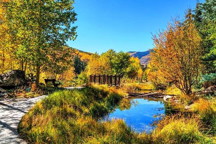 As a summertime destination it offers golfing, hiking with Gore Creek that runs directly through the town centre popular for fly fishing, .