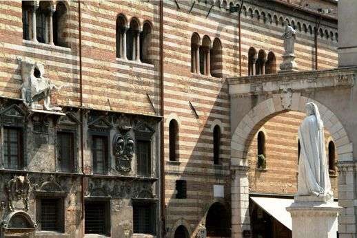 For it was Easter Day and I sat in the sun in the Piazza dei Signori, under the stunning Loggia del Consiglio, in front of the brooding statue of Dante, with his finger upon his cheek and sporting his linen cap with its lappets over his ears while children played football and rode miniature scooters beneath.