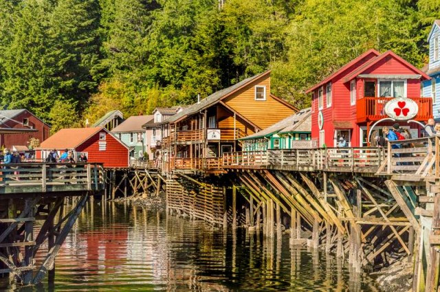 Steeped in a long history of fishing, the Ketchikan area was first popular for salmon with the local Natives. It started as a mining camp, then the community began growing into what it is today, but with a few twists and turns along the way. As I explored Ketchikan, I found evidence of their industrial past as a timber town, fishing community, mining outpost, and finally a tourism destination. The distinctly unique landscape and natural resources dictates interest and growth as the population and tourism booms. You may not notice it at first, but a lot of the streets, avenues, and paths take through the town have fish swimming below them.