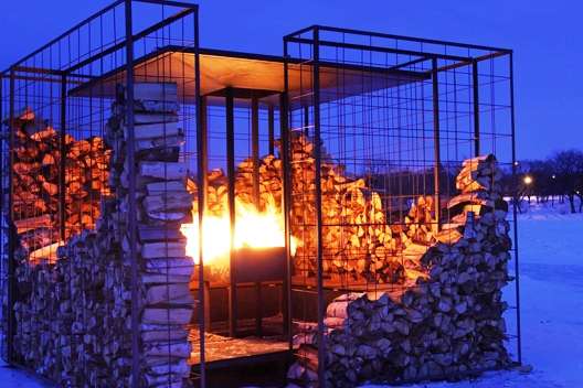 Warming Huts is an Art + Architecture Competition on Ice which sees works of architecture along The Red River Mutual Trail.